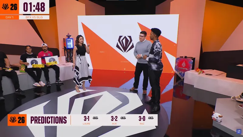 虎扑03月16日讯 英文流分析台三位解说主持预测BLG对阵BFX结果,值得一提的是三人均认为BLG将击败BFX。
