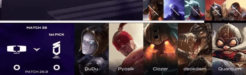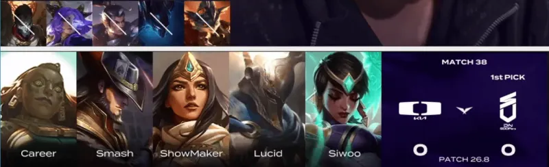 DK选用:Siwoo俄洛伊、Lucid潘森、ShowMaker卡牌、Smash希维尔、Career卡尔玛